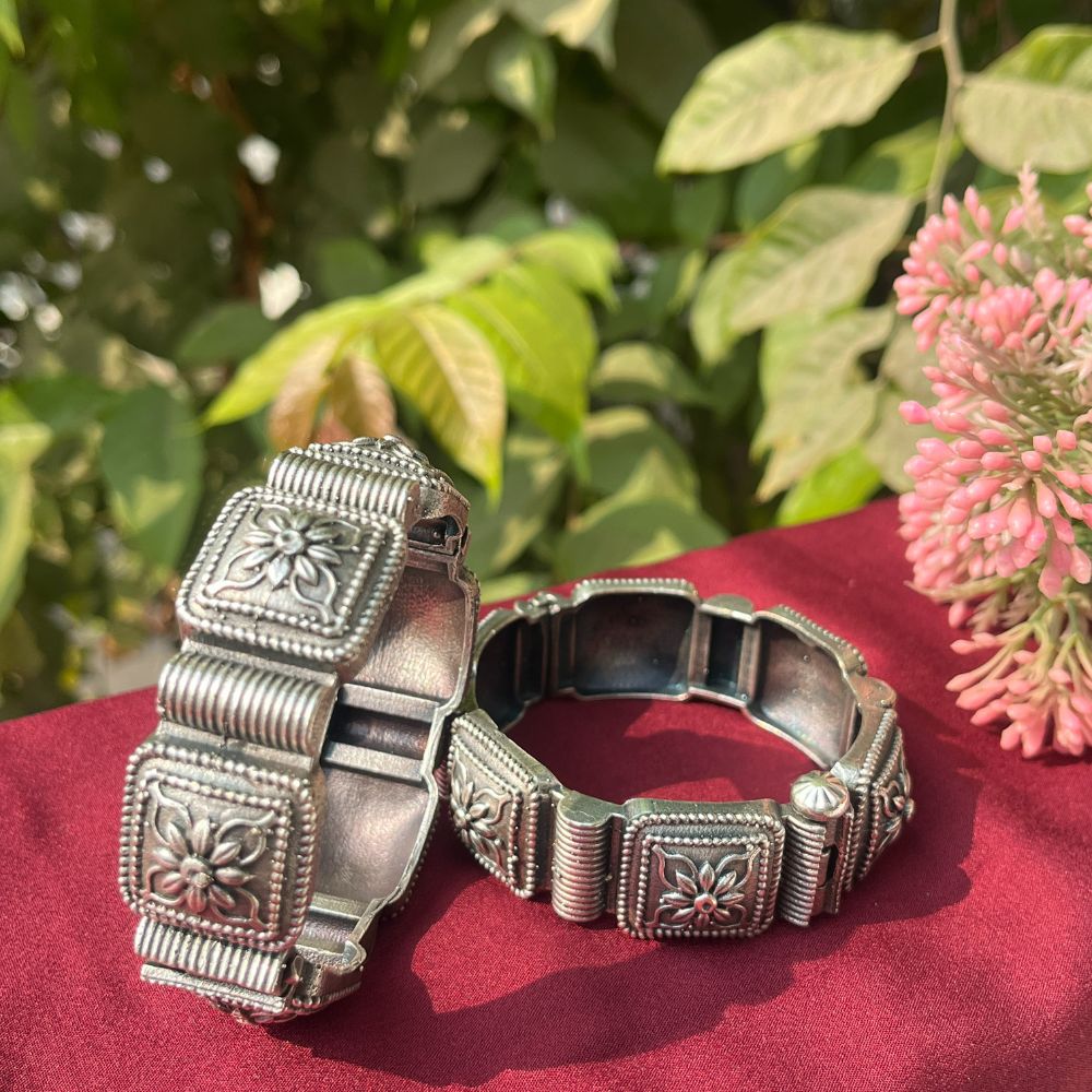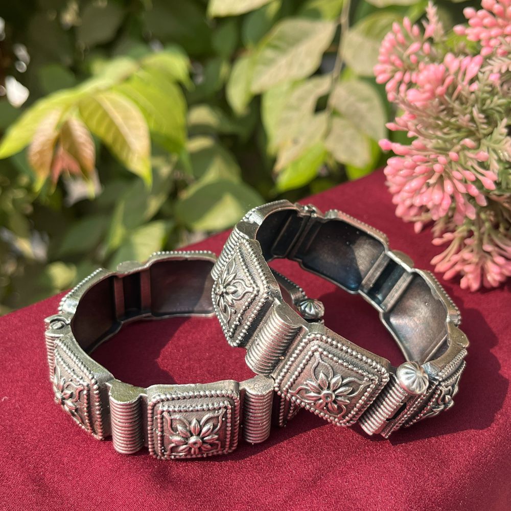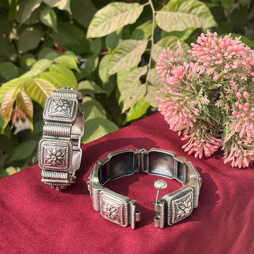 | Handcrafted silver and brass bangles are a stunning blend of tradition and contemporary design, making them a timeless accessory. Each piece showcases the intricate craftsmanship of artisans who carefully mold and embellish the bangles, preserving traditional techniques while infusing modern aesthetics. When adorned, these bangles exude a sense of sophistication and charm, adding a touch of heritage to your style while maintaining a fresh, contemporary vibe.Their adaptability ensures they become a staple in your jewelry collection, perfect for any occasion. The weight and dimensions listed in the additional information include details about the box that contains the product. |