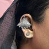 Enhance your style with the fish hook and Bugadi earrings, inspired by the intricate door knobs of ancient Indian architecture. Crafted from brass, this earcuff exudes regal elegance, letting you wear a piece of architectural heritage wherever you go.