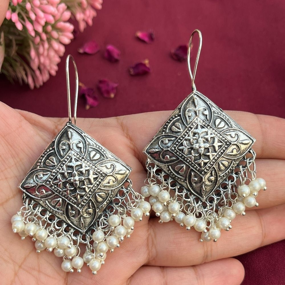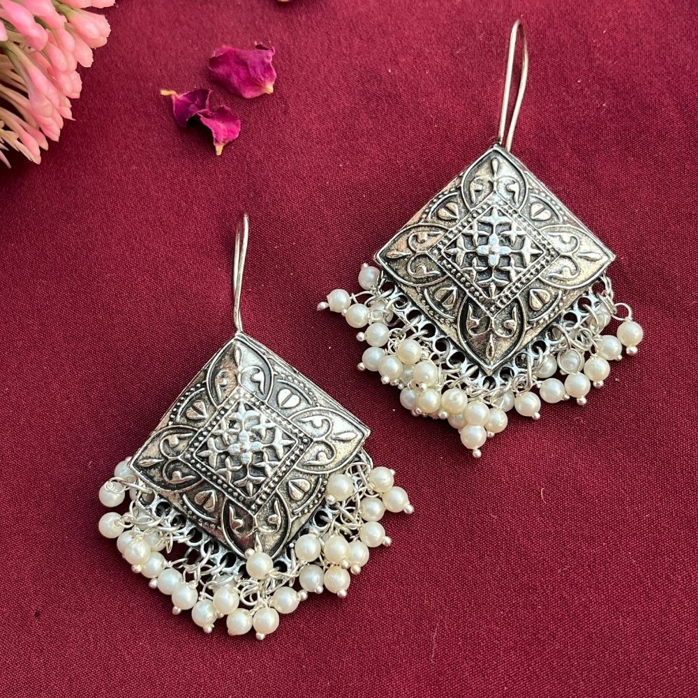 | Length 7.5 cm. Oxidized fusion long earrings are a captivating accessory that combines the timeless elegance of oxidized metal with innovative designs inspired by both traditional and contemporary aesthetics. These earrings are known for their elongated, statement-making design that draws attention to the face and adds an air of sophistication to any ensemble. The weight and dimensions listed in the additional information include details about the box that contains the product. |