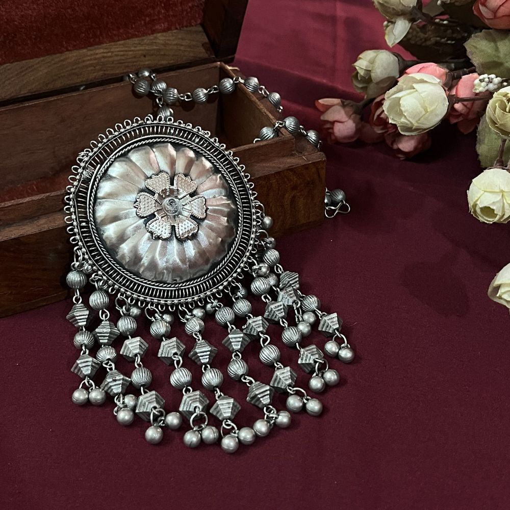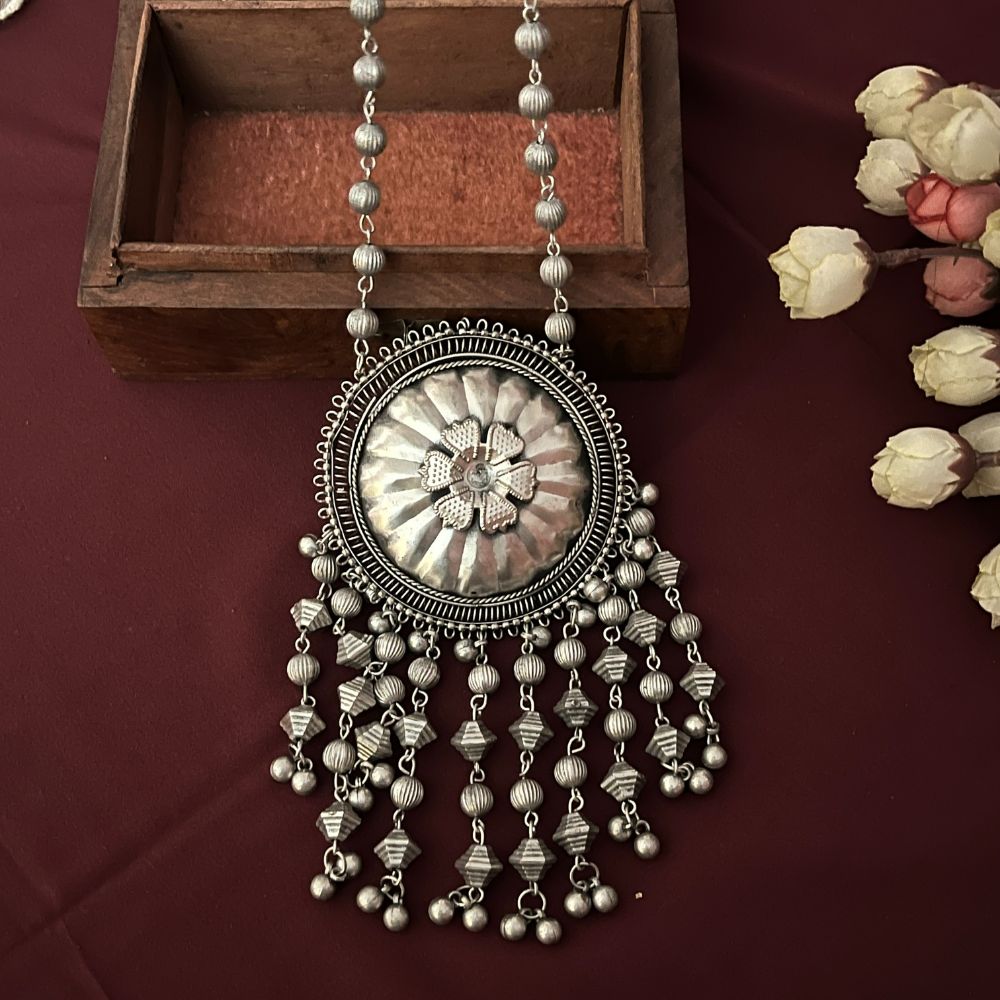 Let your neck be the center of attention with our folk long necklace, a masterful blend of age-old tradition and modern sophistication. Each necklace is meticulously designed to honor the rich heritage of Indian craftsmanship, featuring intricate oxidised detailing that adds depth and character to every piece. Perfect for festive gatherings, special occasions, or adding a fusion flair to your everyday look, our statement necklace effortlessly weaves together the charm of the past with the sleekness of contemporary style. Crafted with precision and care, these necklaces stand out as wearable art, offering an affordable way to elevate your wardrobe and make a lasting impression wherever you go. Whether paired with ethnic attire or modern outfits, our folk long necklace is your go-to accessory for celebrating culture, craftsmanship, and your unique sense of style.