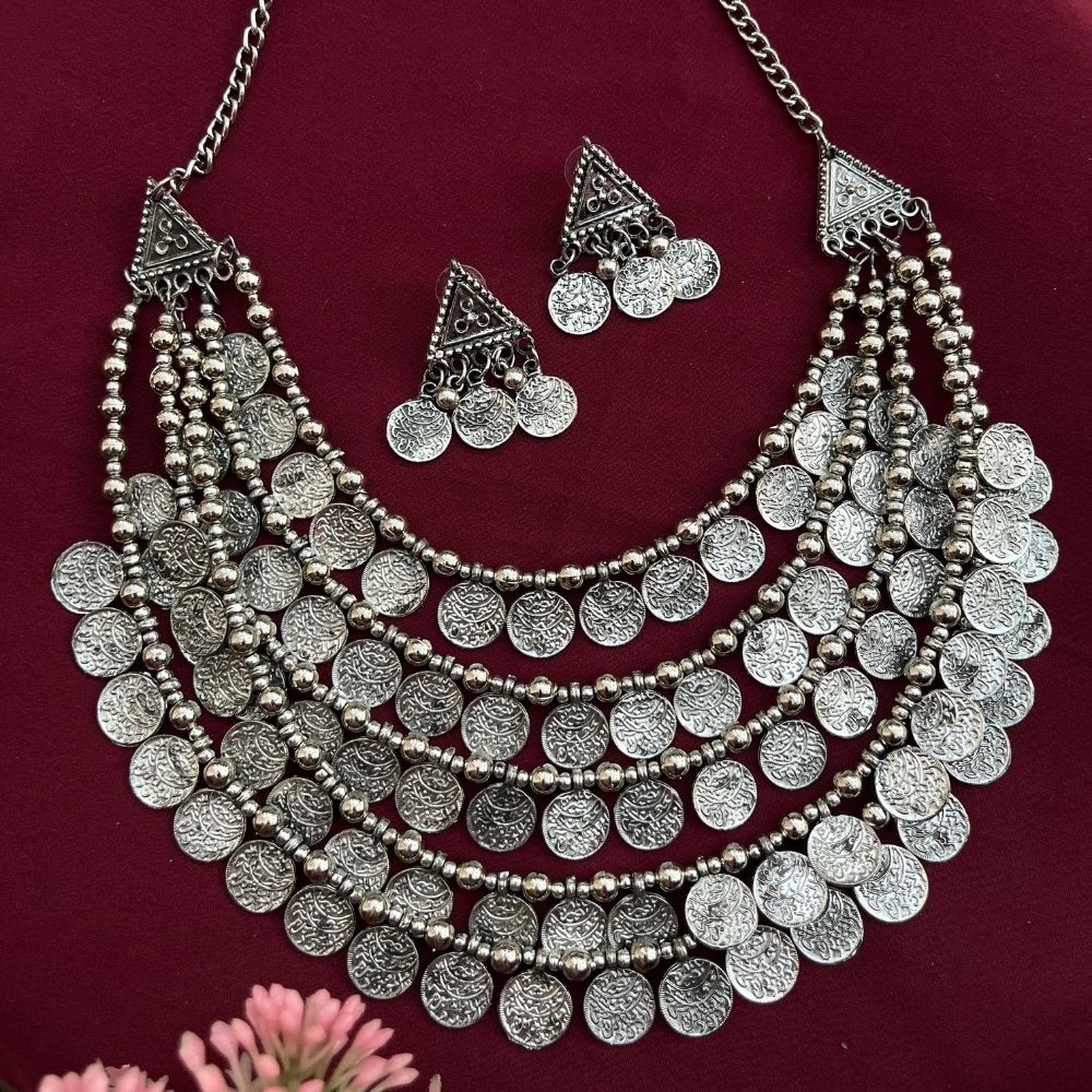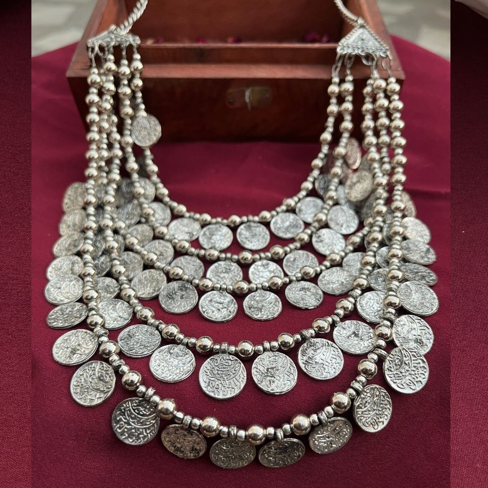| The craftsmanship behind this set is a blend of heritage and skill, where every piece tells a story. The necklaces may feature layers of chains adorned with ornate pendants, while the earrings could be designed in a unique way that will complement the necklace. The weight and dimensions listed in the additional information include details about the box that contains the product. |