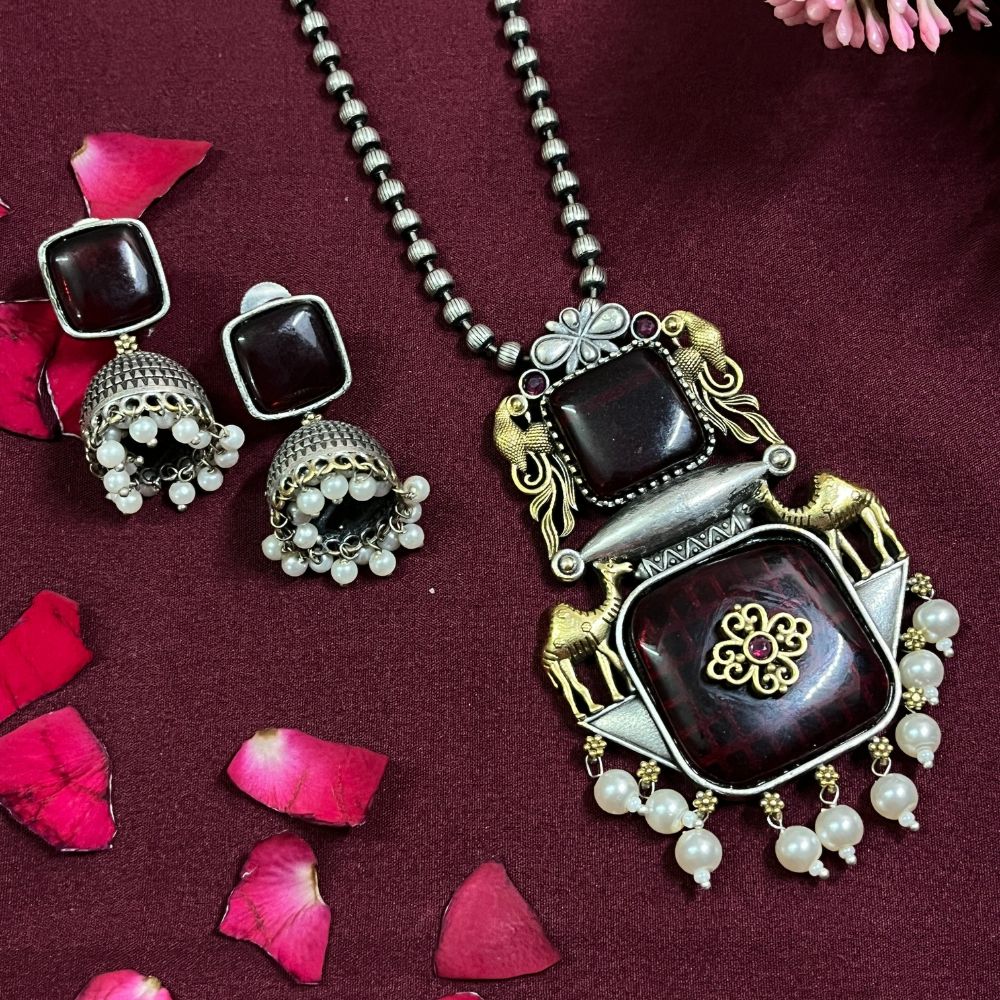 | Unveil the beauty of nature with our new long fusion necklace, crafted to perfection for the festive season. This elegant piece features a stunning blend of gold and silver finishes, expertly fashioned in brass to create a sophisticated dual-tone effect. The intricate design is inspired by the delicate intricacies of nature, with motifs that evoke the grace of blooming flowers and lush leaves. Each detail is thoughtfully rendered, capturing the essence of natural beauty while adding a modern twist. Ideal for complementing both traditional and contemporary ensembles, this necklace is the perfect addition to your festive collection, ensuring you shine with timeless elegance and charm. The weight and dimensions listed in the additional information include details about the box that contains the product. |