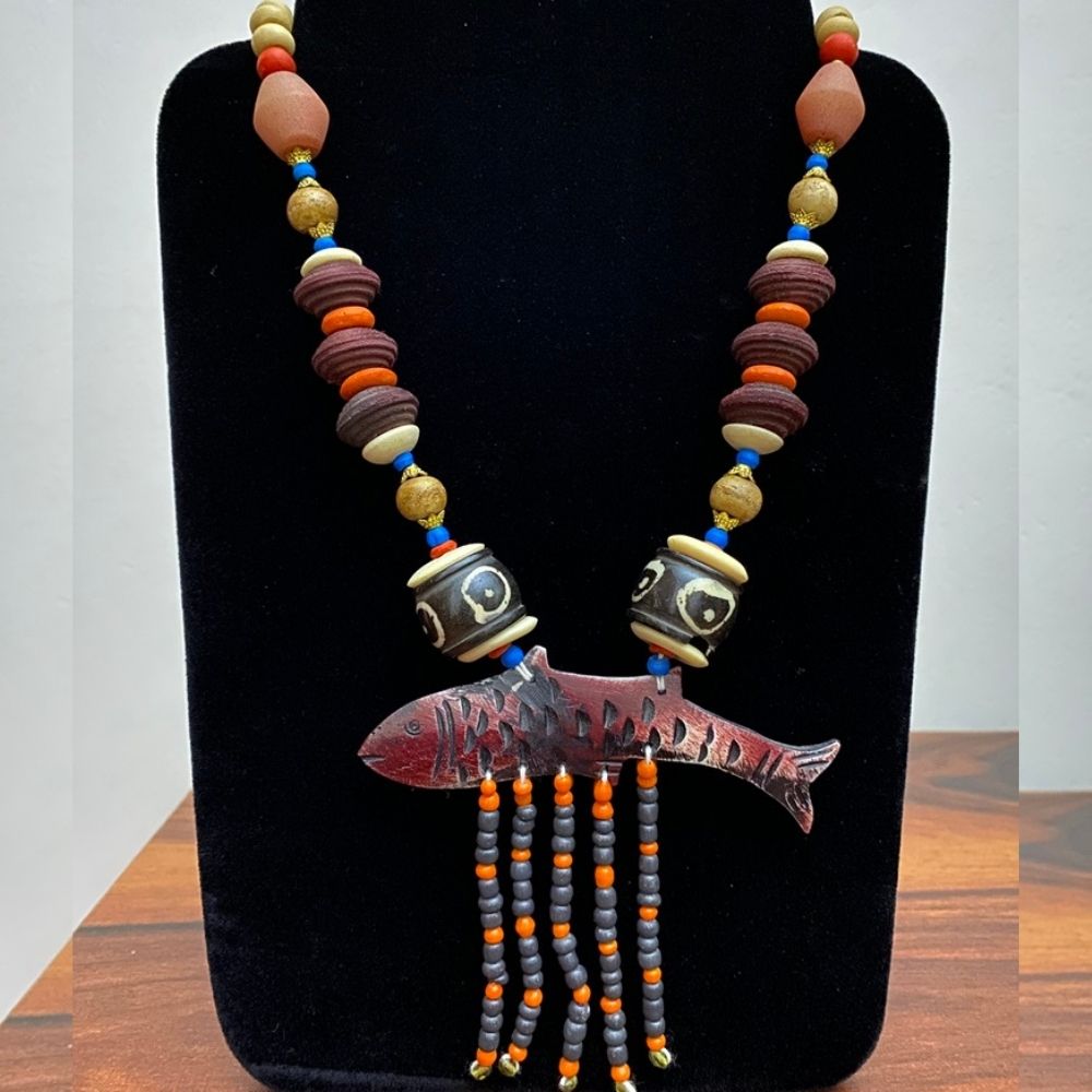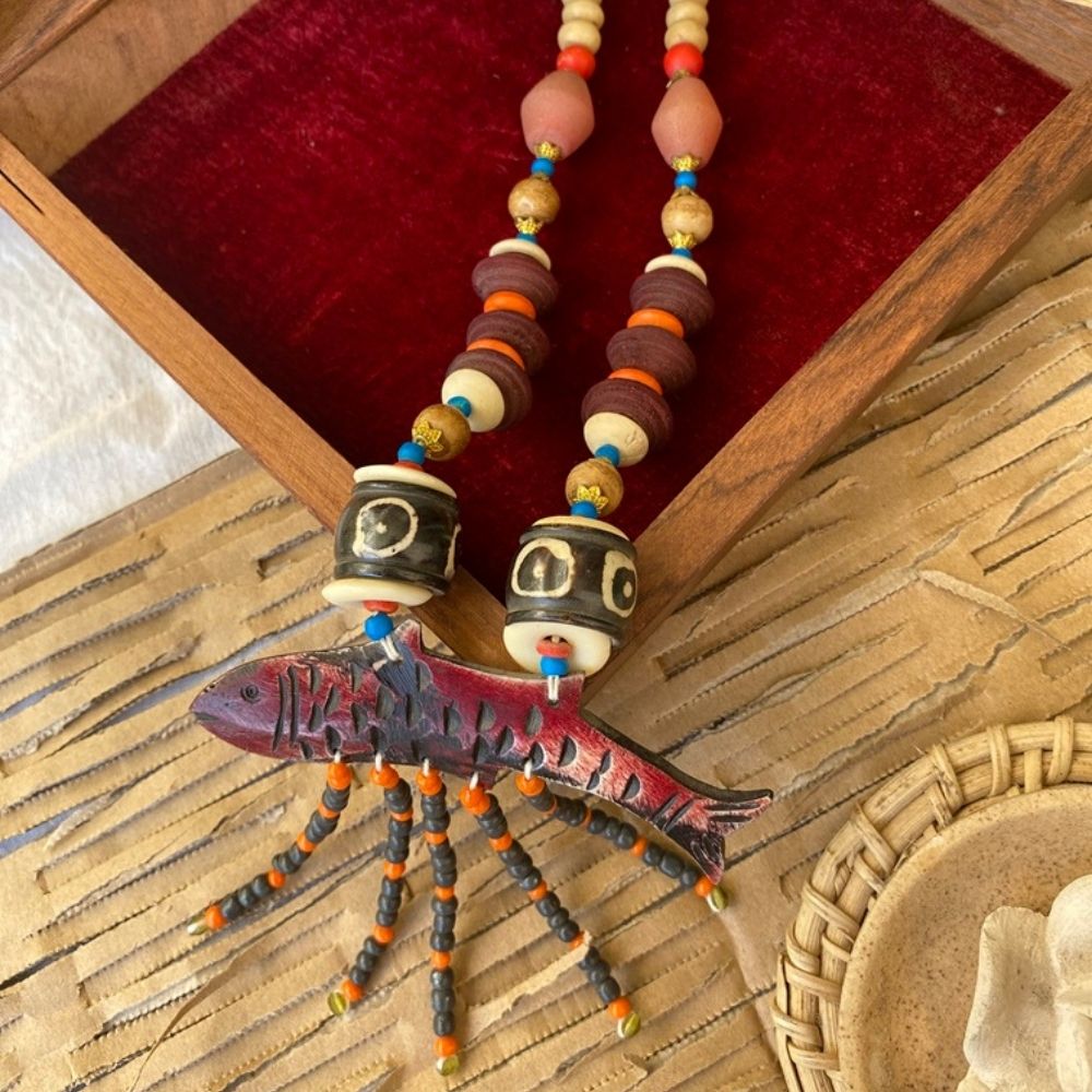 Elevate your style with our handmade wooden necklace, each piece crafted with care for a unique touch of natural beauty.