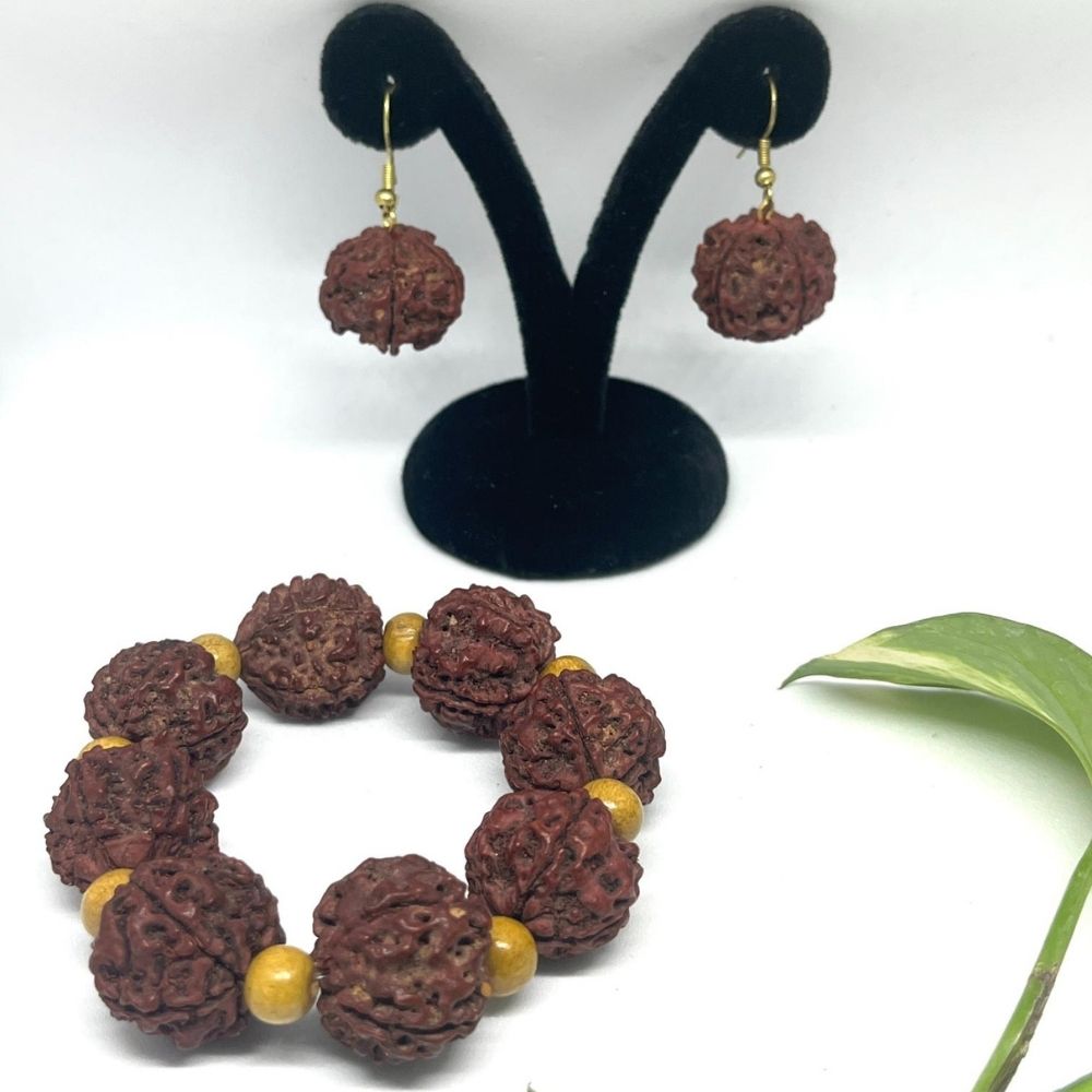 | Elevate your spiritual style with our rudraksha collection, meticulously crafted to bring peace and balance to your everyday. It consists of Bracelet and Earrings. |