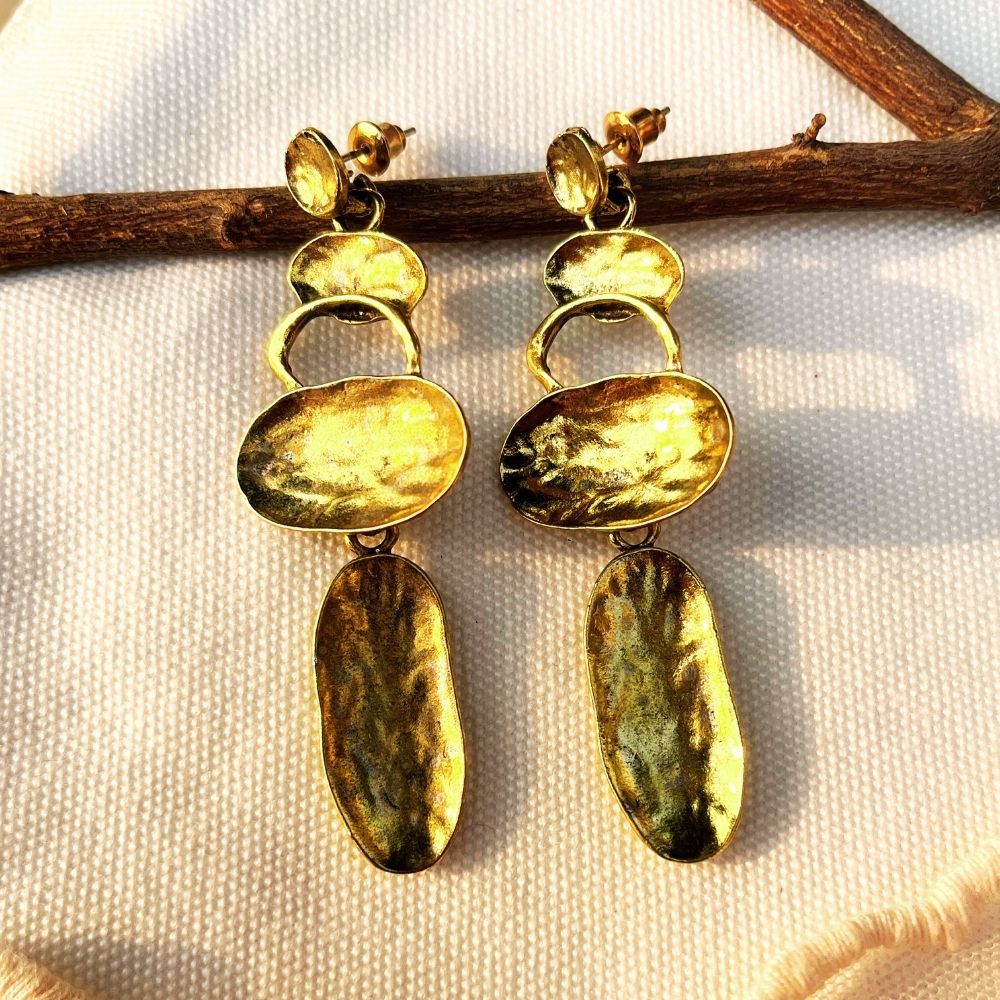 | Step back in time with these stunning antique gold statement earrings, inspired by the opulence and artistry of medieval-era jewelry. These earrings seamlessly combine historical charm with contemporary design, making them a standout piece for any jewelry collection. Rich Antique Finish: The warm, muted gold tone mimics the regal allure of vintage treasures, giving these earrings an authentic antique look. Medieval-Inspired Design: Featuring intricate patterns and ornate detailing reminiscent of the craftsmanship of the medieval era, these earrings evoke a sense of history and grandeur. Statement-Making Appeal: Bold and eye-catching, these earrings are designed to be the centerpiece of your outfit, effortlessly drawing attention and admiration. Modern Twist: While rooted in history, the design incorporates trendy elements that make these earrings perfect for today’s fashion-forward woman.The weight and dimensions listed in the additional information include details about the box that contains the product. |