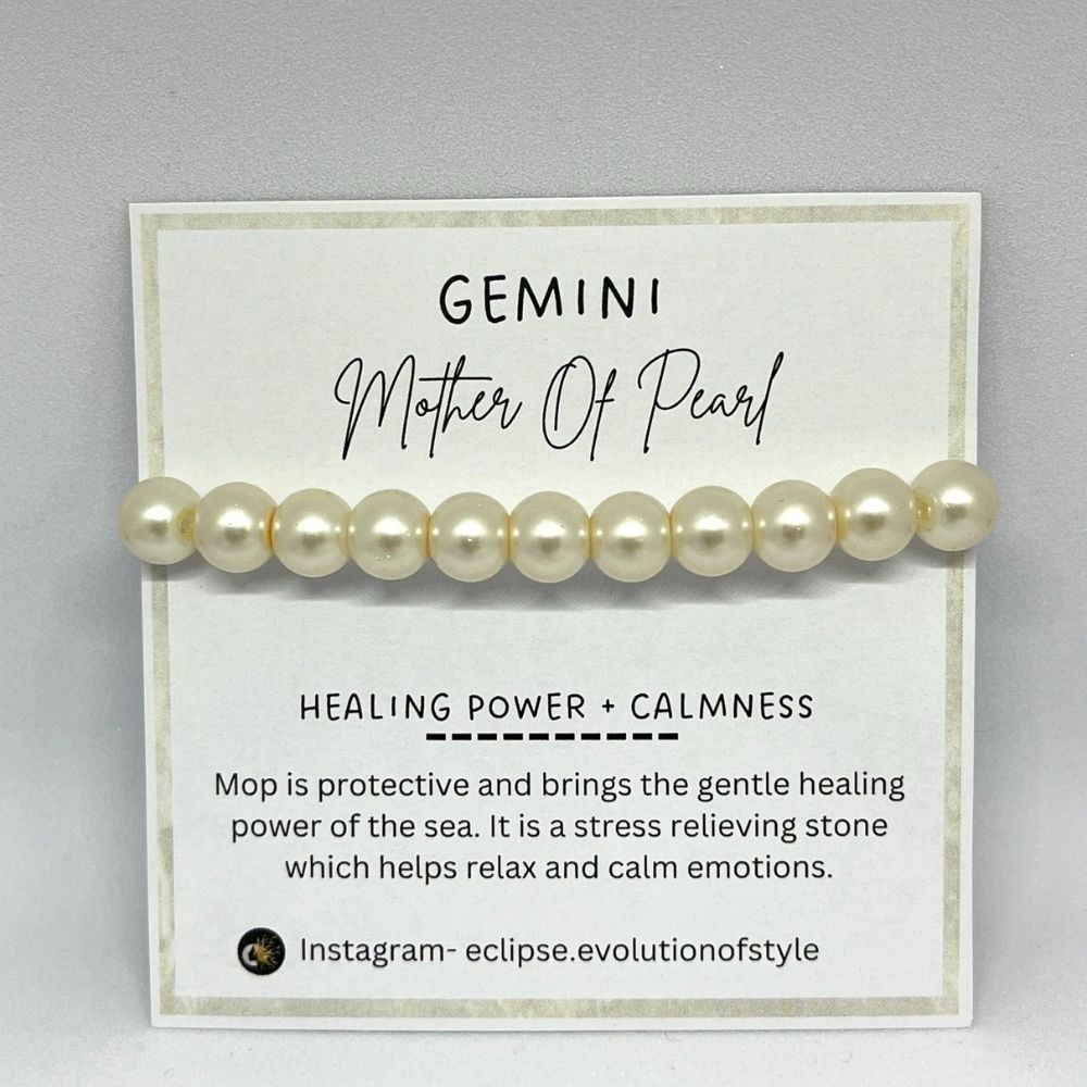 | Mother of pearl is traditionally associated with Gemini. However, our bracelets draw inspiration from its elegant hues, crafted in glass beads that mirror the iridescence of mother of pearl. This makes our zodiac bracelets not only cost-effective but also fashionable and ideal for gifting—a true testament to contemporary style. |